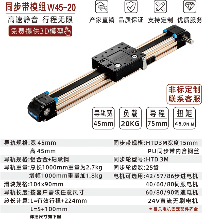 上一个:Z45-15 精密xy轴十字滑台皮带模组铝型材自动化机械手直线同步带导轨定制