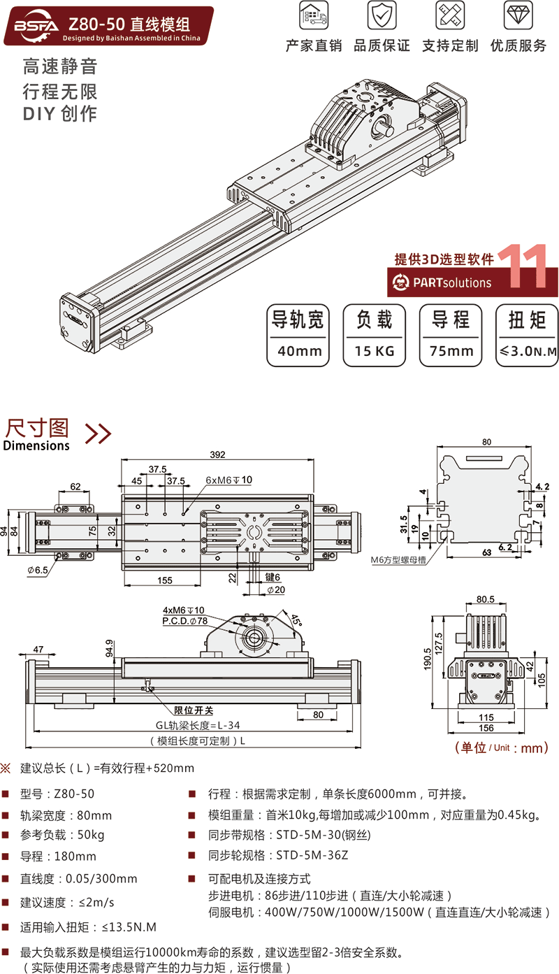 Z80-50 自行走同步带模组-导程180mm