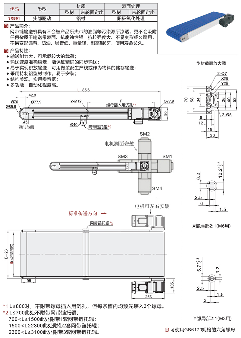 SRB01 网带链输送机食品流水线车间可移动铝型传动带爬坡上料快递传送带