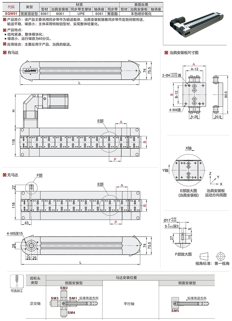 SQW01 输送机耐高温食品生产线链板压铸件流水线带附件同步带分度组件小