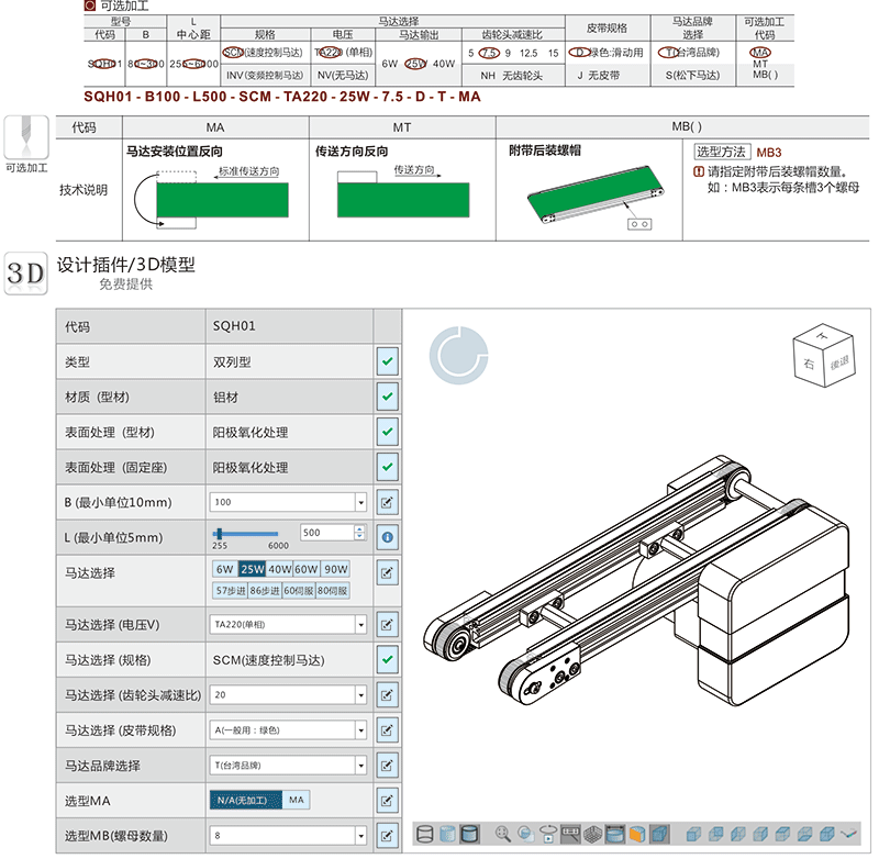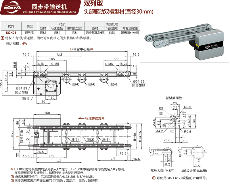 SQH01 双列输送机精密小型铝材同步皮带传送带自动化设备车间工厂流水线