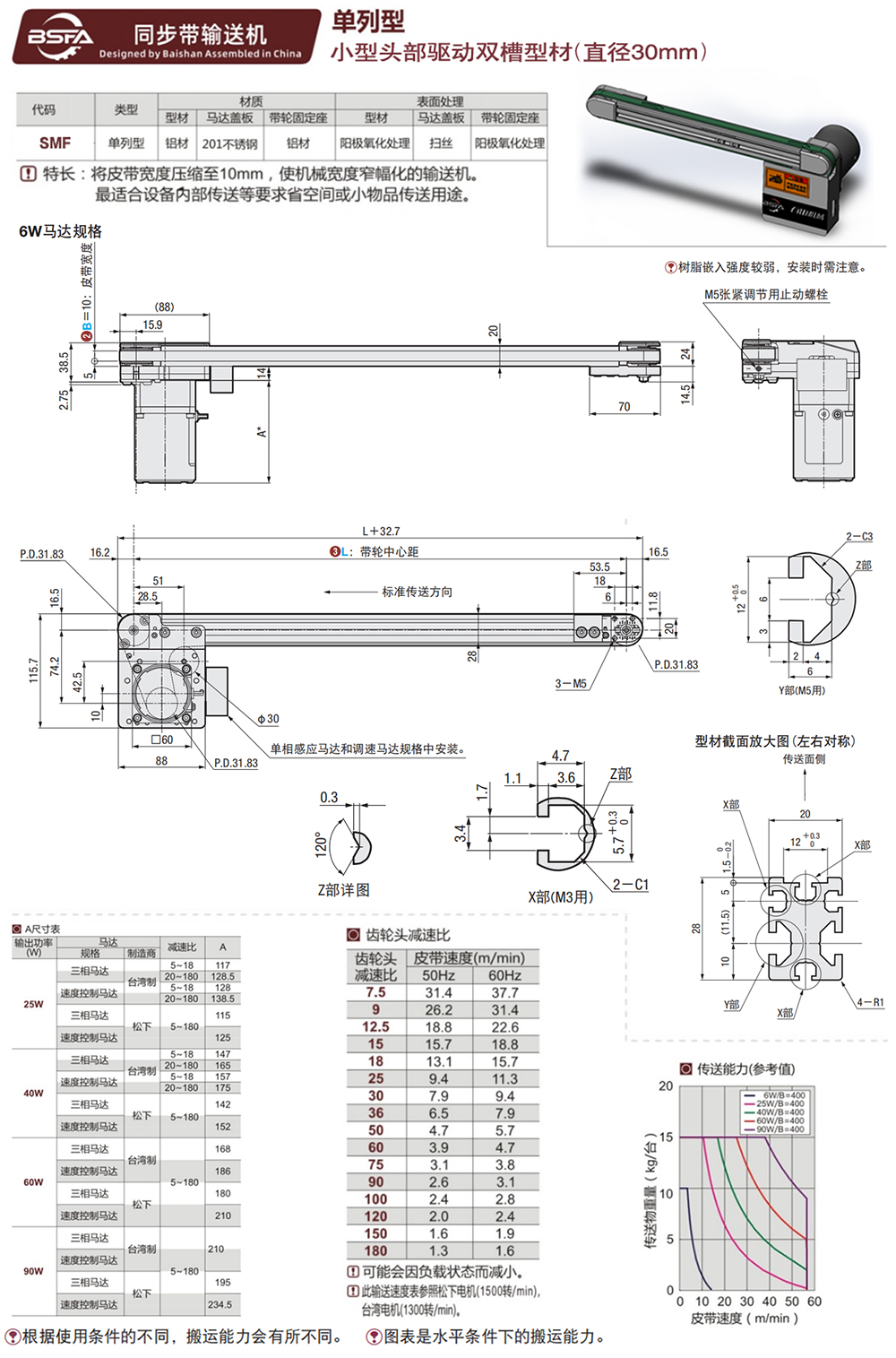 SMF 小型同步带自动化流水线精密铝材传送皮带机替换头部驱动输送线厂