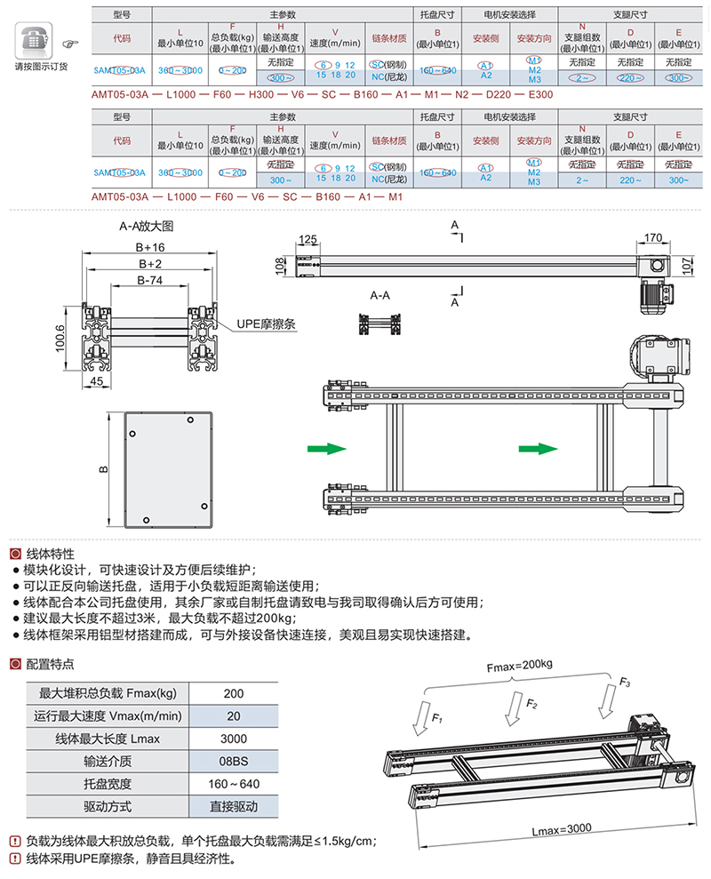 SAMT05 定做链条输送线双排单排重载三排网带流水线大节距托盘链条输送机