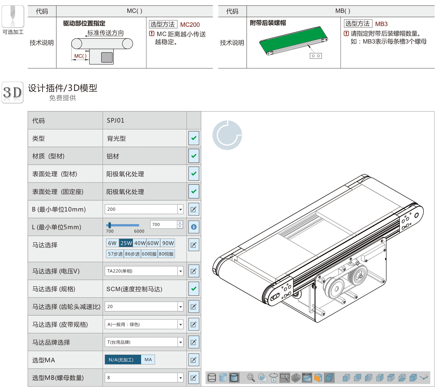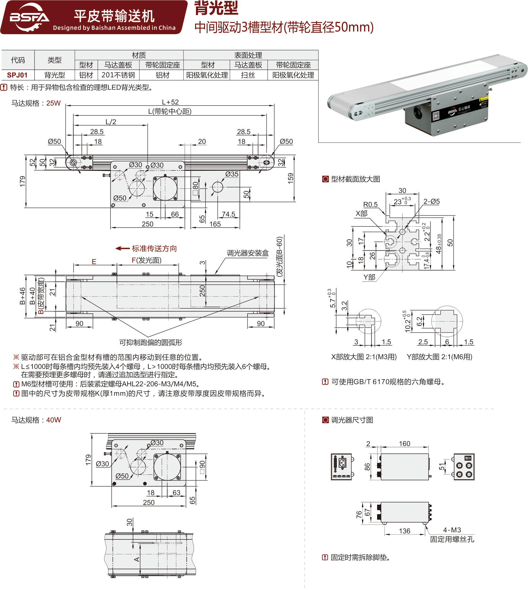 SPJ01 背光型平皮带输送机-中间驱动