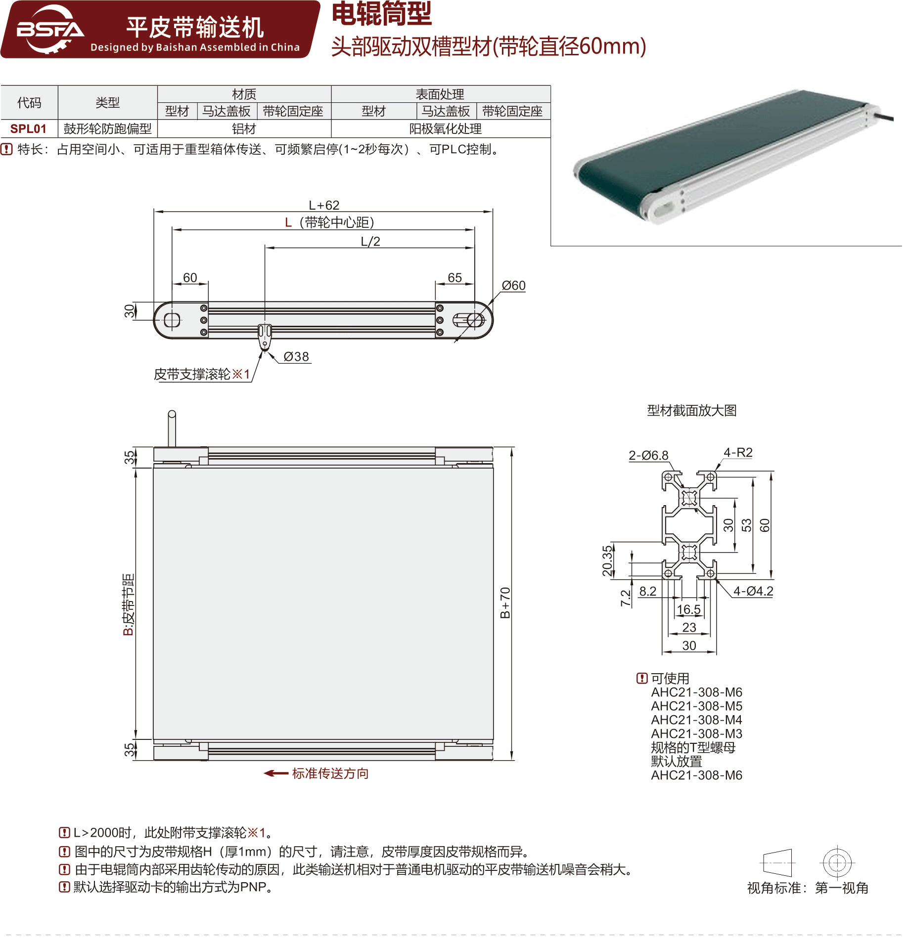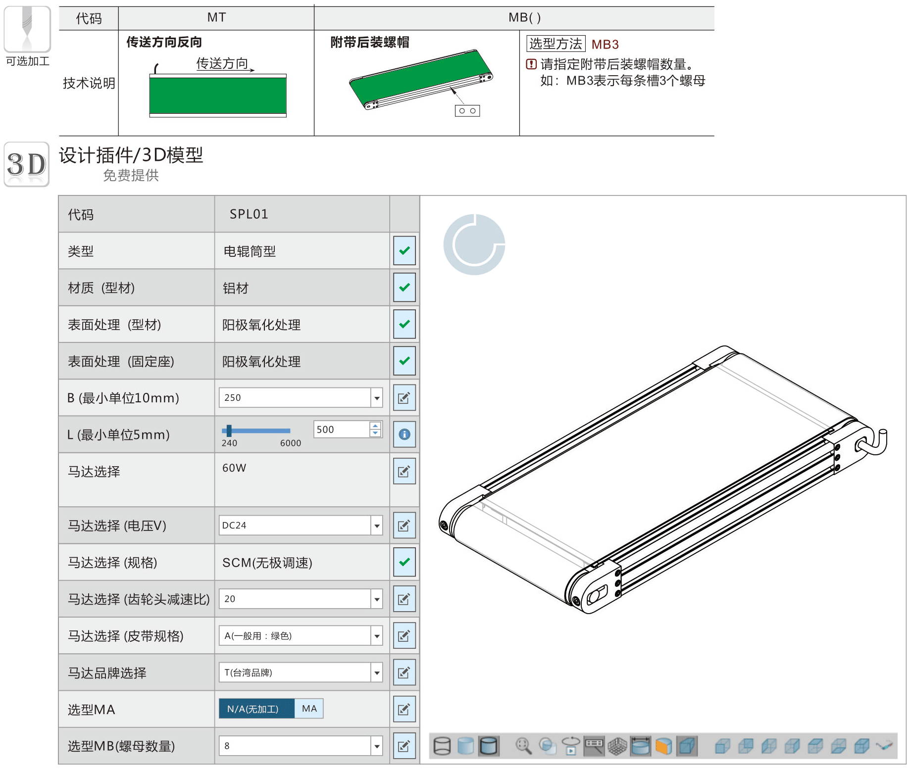 SPL01 电辊型输送带电滚筒输送机精准定位皮带线食品级电机内置桌面小型传送带