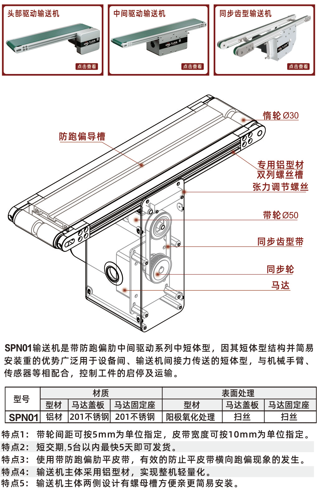 SPN01 短机长型平皮带输送机-头部驱动
