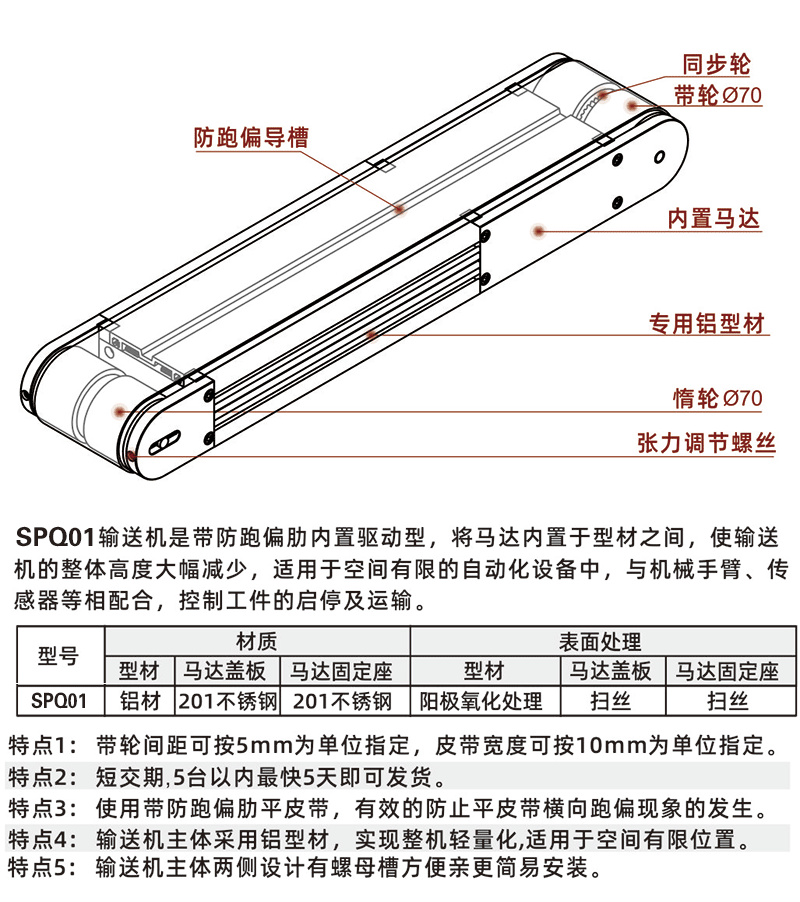 SPQ01 马达内置型平皮带输送机-内置驱动
