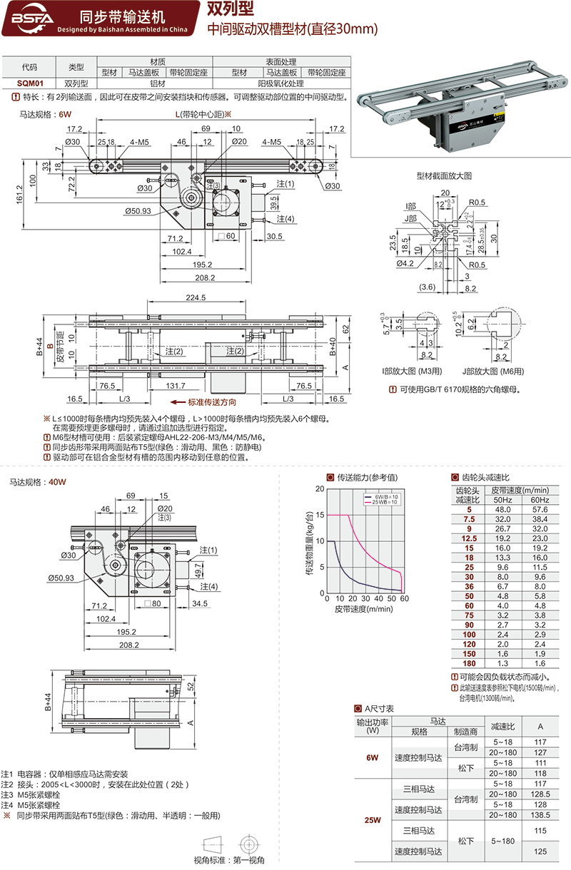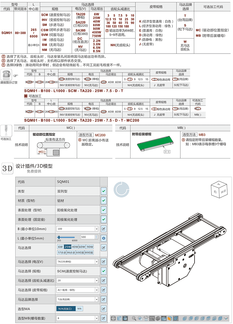 SQM01 双列型同步带小型输送机-中间驱动