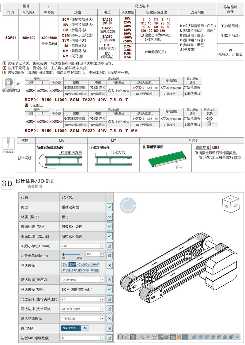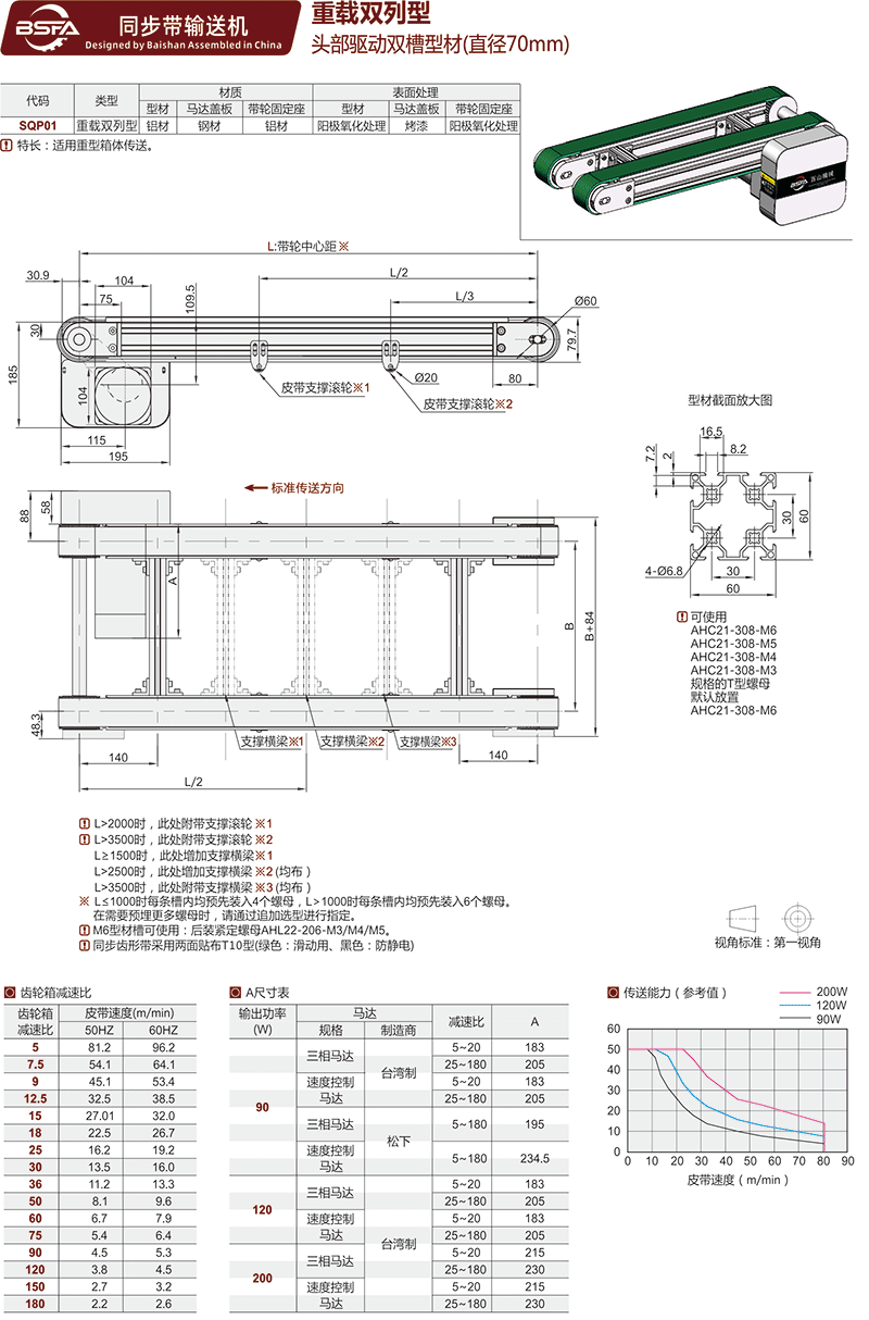 SQP01 重载型同步带传送机小型输送机铝型材双条流水线电机传输带医疗传送带设备