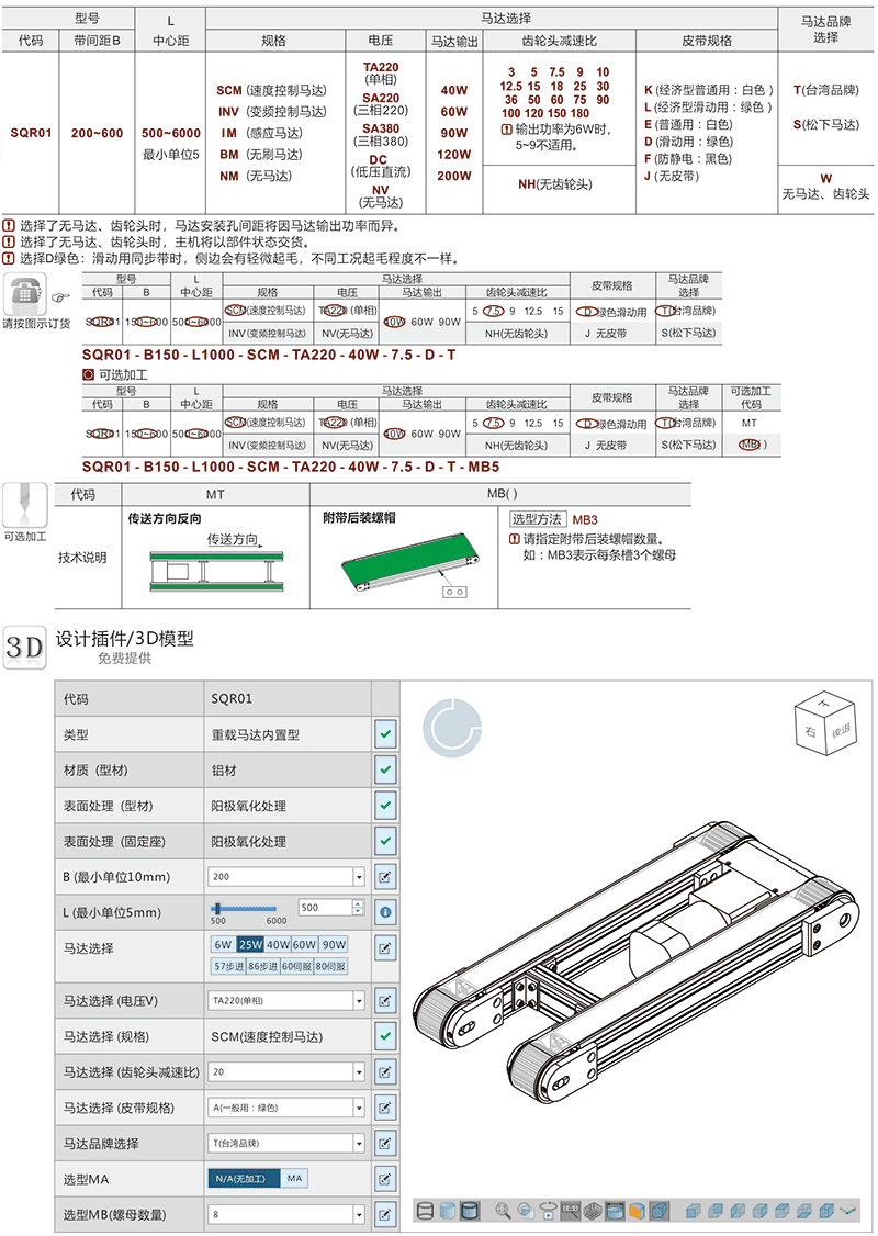 SQR01 重载同步皮带输送机双条运输送线电机传输带传送机双列精密小型流水线