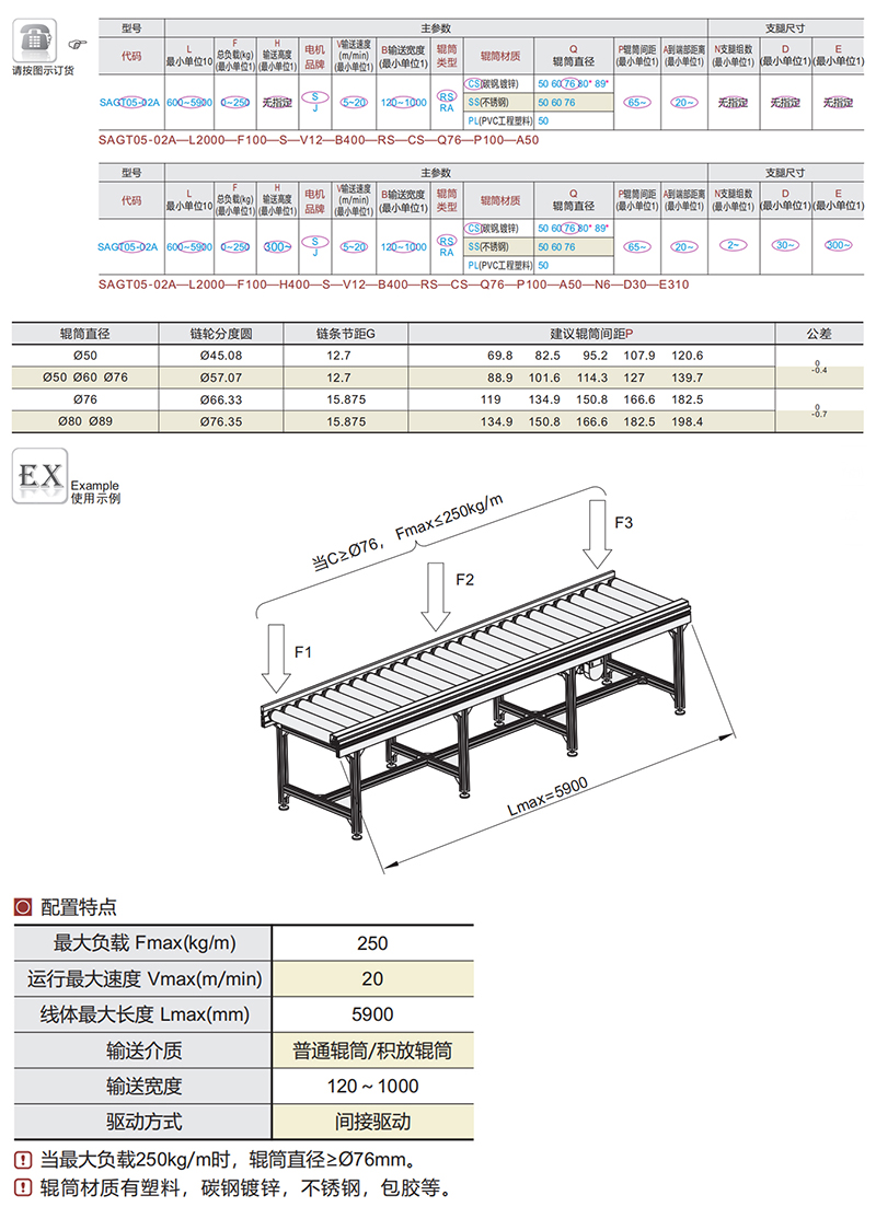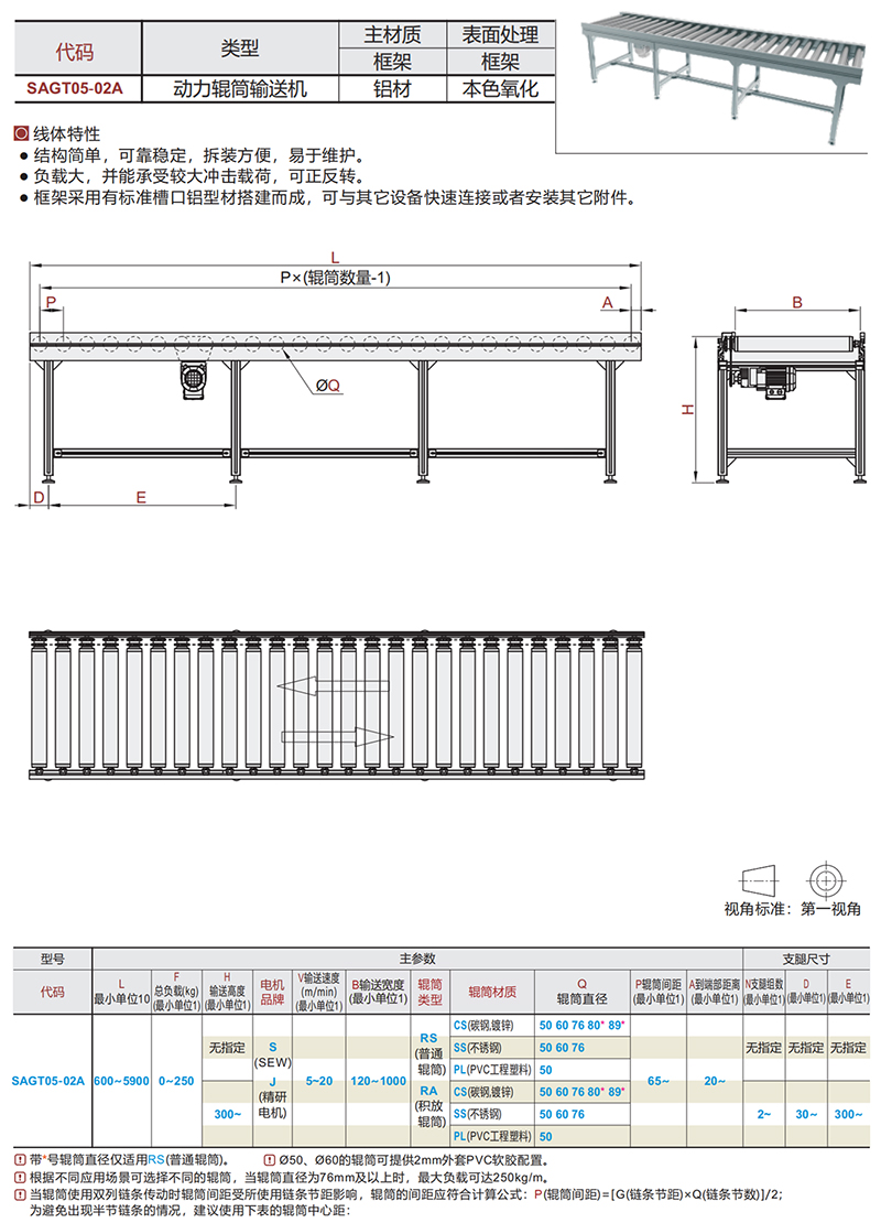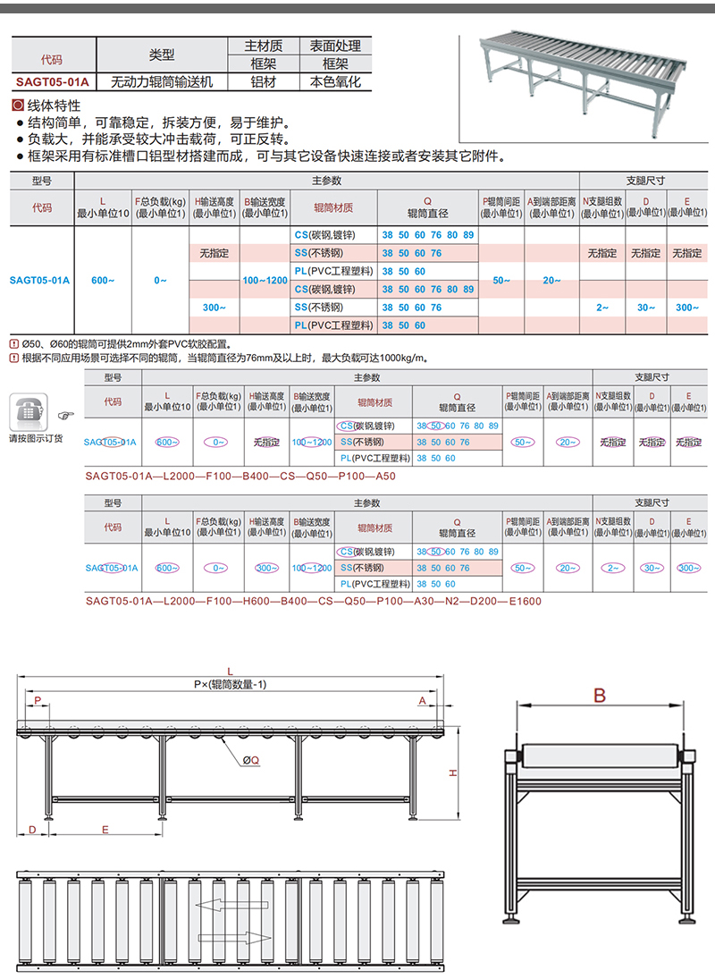 SAGT05 定制滚筒输送机不锈钢托辊传送带快递分拣辊筒托盘重型滚筒输送机