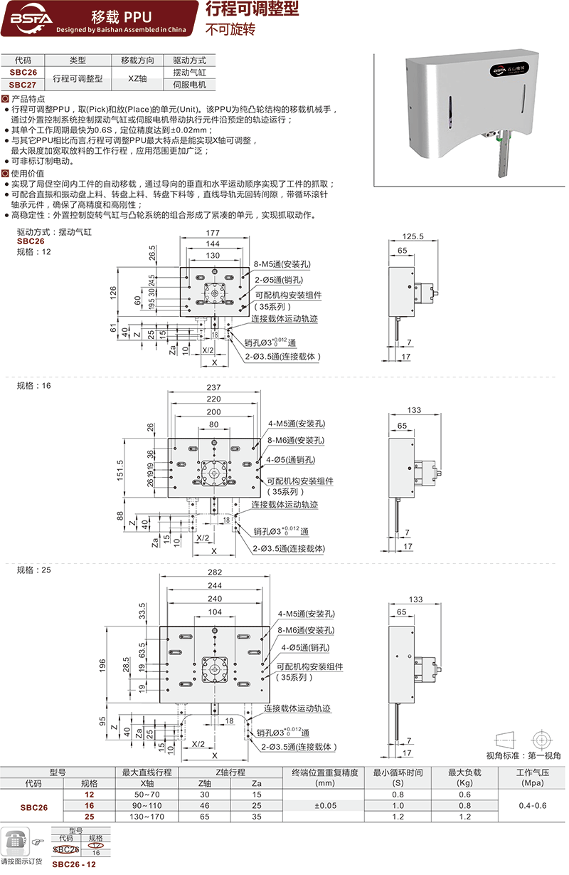 SBC26-27 行程可调整型移栽PPU-不可旋转