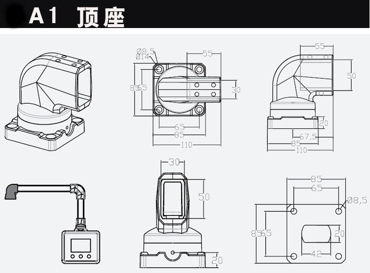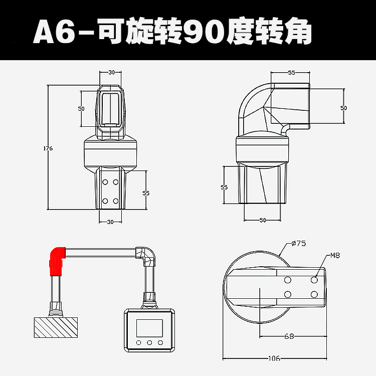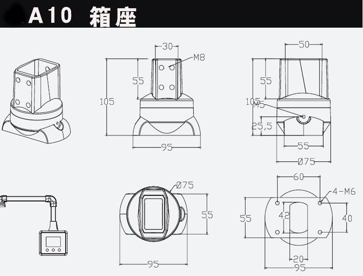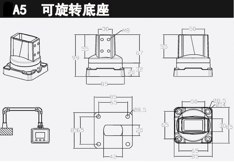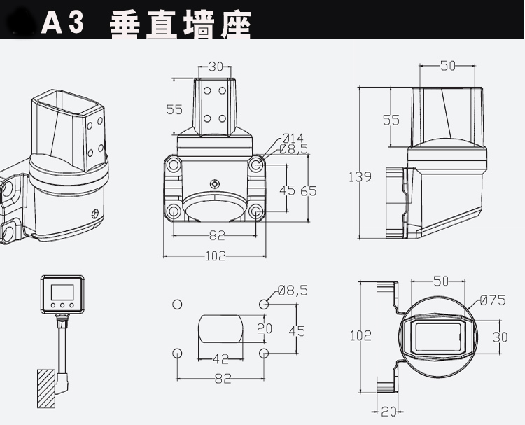 5030组件触摸屏悬挂支撑架吊臂操作箱支架旋转底座配件控制盒墙座