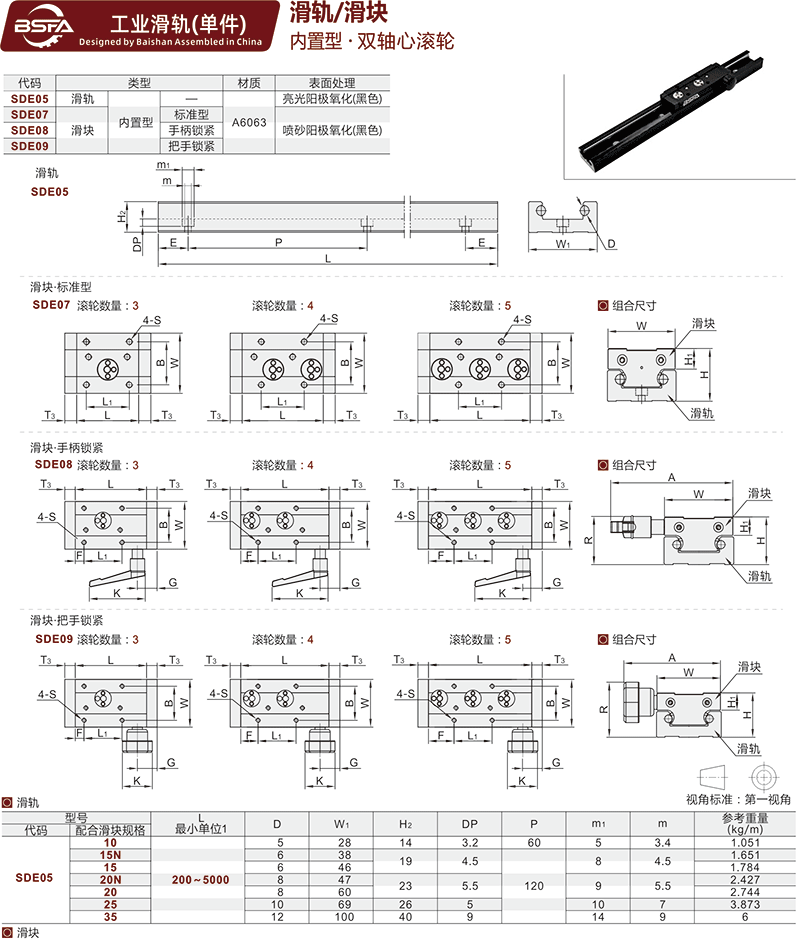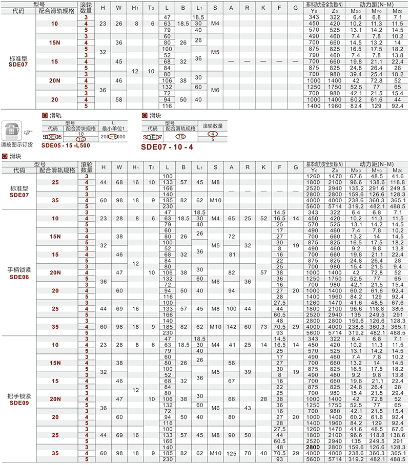 SDE05-09 工业滑块(单件)内置型 滑轨/滑块